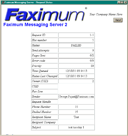 The FMS System Log records all the events of significance. This can be used to monitor the operation of the system as well as to provide information on problems that might be detected by the fax server software.