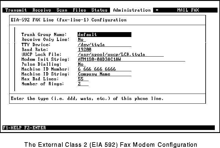 The screen that illustrate the configuration for external Class 2 (EIA 592) fax modems is shown in Figure 98.