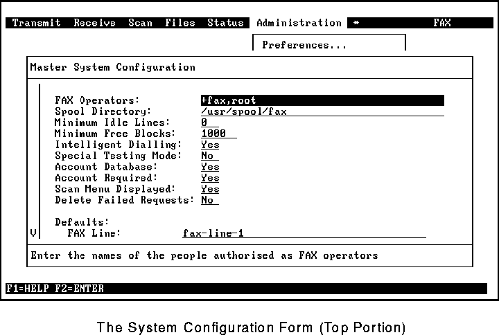 This option permits the administrator to configure the fax system. Individual fields are described below (see Figure 90 and Figure 91):